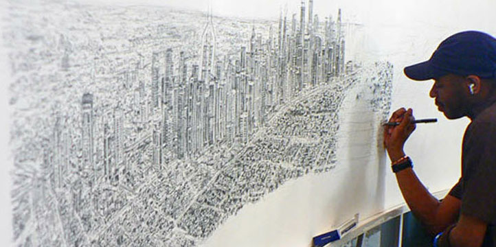 Après avoir survolé une ville pendant une vingtaine de minutes en hélicoptère, Stephen Wiltshire est capable d’en dessiner les moindres recoins sans oublier un réverbère ou une fenêtre, et cela uniquement de mémoire.