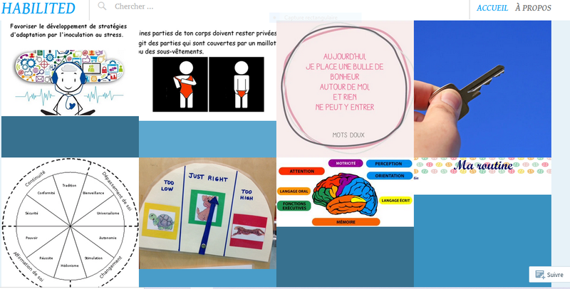 Références vers des outils gratuits et spécialisés touchant une grande palette de sujet: estime de soi, deuil, séparation des parents, les TSA, le TDAH, anxiété, autonomie...