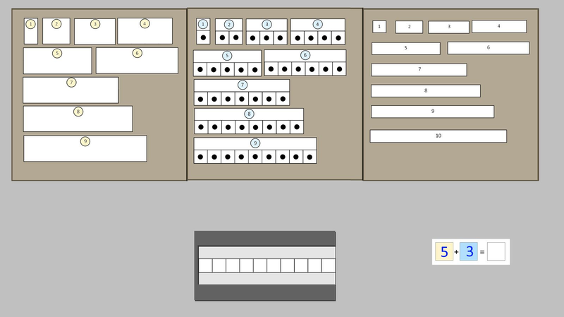 Cet outil est constitué de 3 séries de réglettes et d'une bande sur laquelle l'élève va pouvoir disposer ses réglettes. Il a été conçu pour travailler le surcomptage et les additions à trou. Il permet de travailler ces compétences en lien avec la représentation...